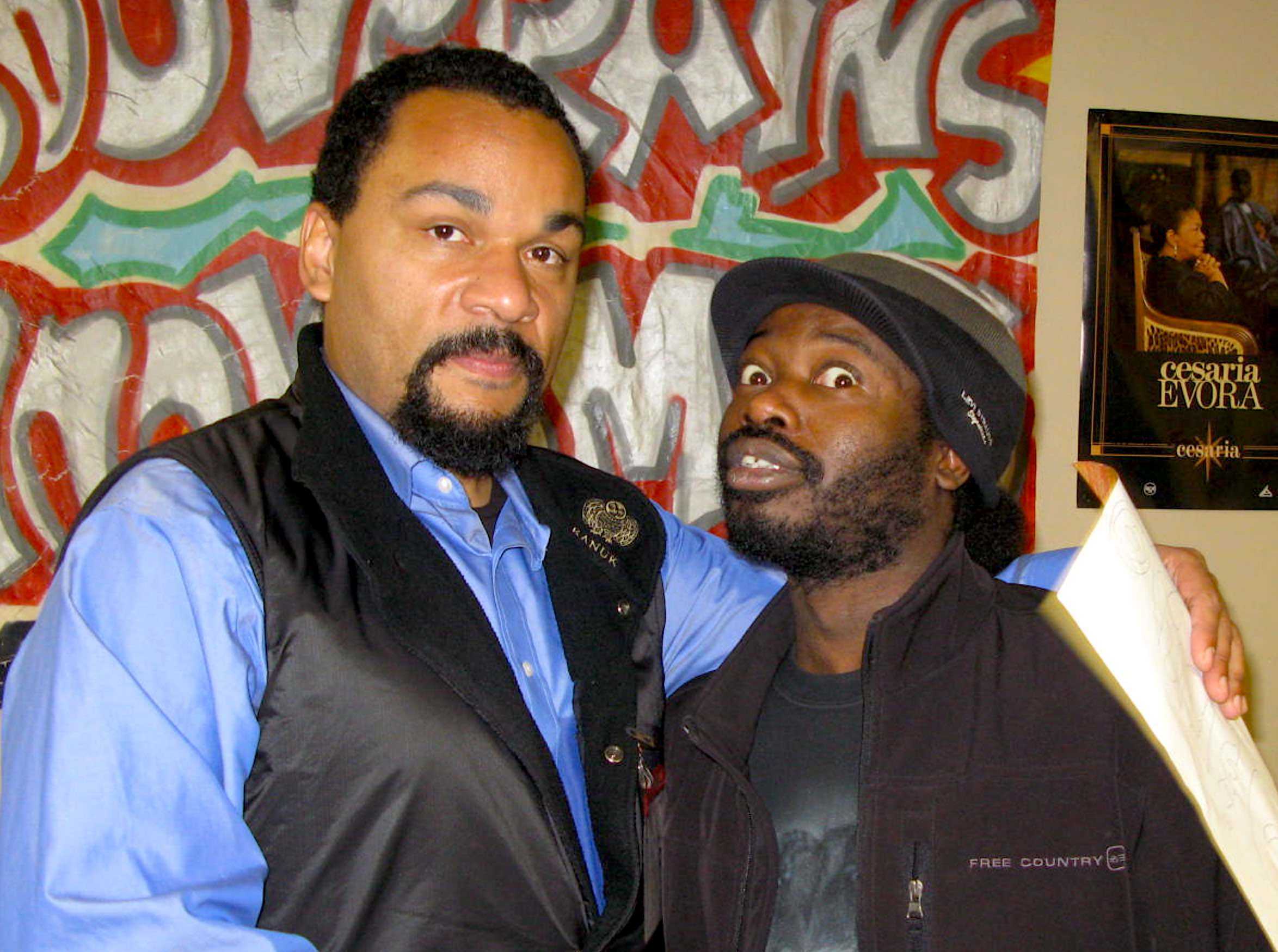 01- Bonjour Dieudo, je m’appelle Rollo. C’est un honneur pour moi et mes amis Souverains de recevoir à notre château un imminent représentant du peuple de la forêt. Un peuple dont je fais partie. Comme tu sais, depuis deux jours, les américains ont choisi comme président du monde quelqu’un comme toi et moi, c'est-à-dire un représentant du peuple de la forêt. On ne va pas bouder notre plaisir, notre victoire, je ne me suis jamais senti aussi fier d’être noir que depuis deux jours et je ne suis pas le seul, beaucoup de mes amis blancs se sentent fiers d’être noirs..!! Hé, oui.. Bientôt, tu verras dans les rues des blonds et des blondes aux cheveux rasta, danser le zouk, le compa, le rara.. Mais si tu permets Dieudo, on parlera de cette victoire un peu plus tard. Pour l’instant, j’aimerais souligner la présence avec nous d’un autre représentant de la forêt, notre artiste-percussionniste préféré, notre ami fidèle, Kattam. Dieudonné, depuis quelques jours, tu as traversé quelques villes du Québec pour présenter ton nouveau spectacle que tu appelles ‘’J’ai fais l’con’’. On verra plus tard avec mes amis, lequel entre toi et nous a vraiment fais le con ? Cher Dieudo, comme ne nous faisons pas partie de la corporation des journalistes, nous allons simplement être nous-mêmes, c'est-à-dire des Souverains. Au lieu de te poser des questions que tu as entendues mille fois, nous aimerions plutôt aborder avec toi quelques thèmes essentiels. Par exemple, l’amour, l’humour, la paix, la Palestine, la liberté, l’amitié, le racisme, Obama et l’avenir des pygmées. Commençons par le plus important, l’amour : Dieudonné, tu ne serais pas le fruit d’une crêpe bretonne qu’un jour ta mère a servi a ton père pour le séduire et faire de lui le père de ses enfants..? (Autrement dit, raconte-nous simplement de quel amour viens-tu..?).