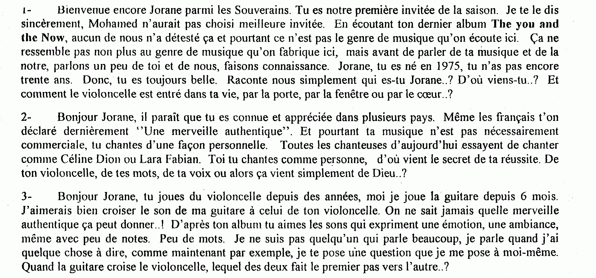 "Quand la guitare croise le violoncelle, lequel des deux fait le premier pas vers l’autre..?" SA